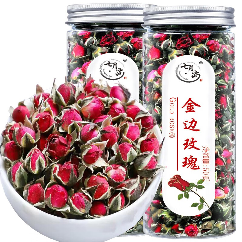 ¥14.9 七月尚(qiyueshang) 七月尚 金边玫瑰花草茶叶无硫玫瑰花茶罐装花蕾花草茶干花 金边玫瑰50克*2罐 29.9