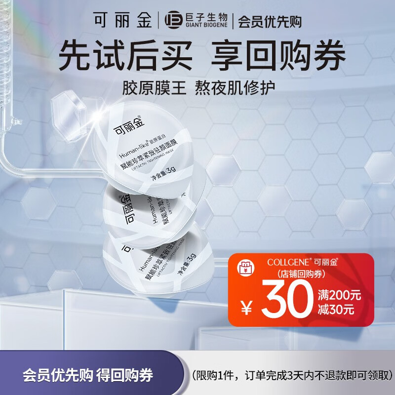 ¥14.9 可丽金(COLLGENE) 胶原蛋白大膜王二代赋能珍萃紧致驻颜睡眠涂抹面膜免洗 大膜王3杯 43.9