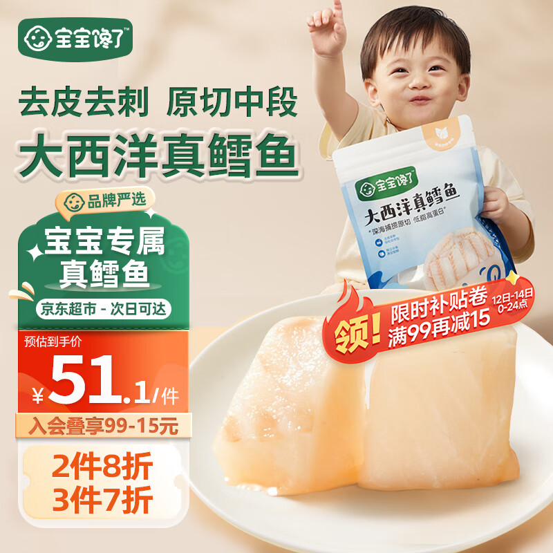 ¥87 宝宝馋了大西洋真鳕鱼新鲜深海生鲜儿童鳕鱼块鱼类去皮去刺享宝宝婴儿食谱 89