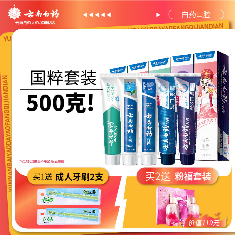 ¥69 云南白药牙膏国粹套装5支装共500克云南牙膏套装牙膏云南白药牙膏薄荷牙膏 1盒装 209
