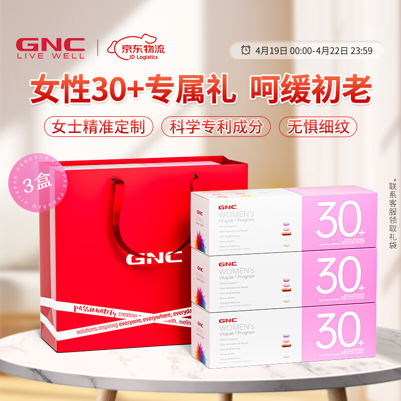 ¥597 GNC健安喜 女性Vitapak多种维生素每日营养包30包复合维生素 女30+ 周期装3盒(90天量) 637