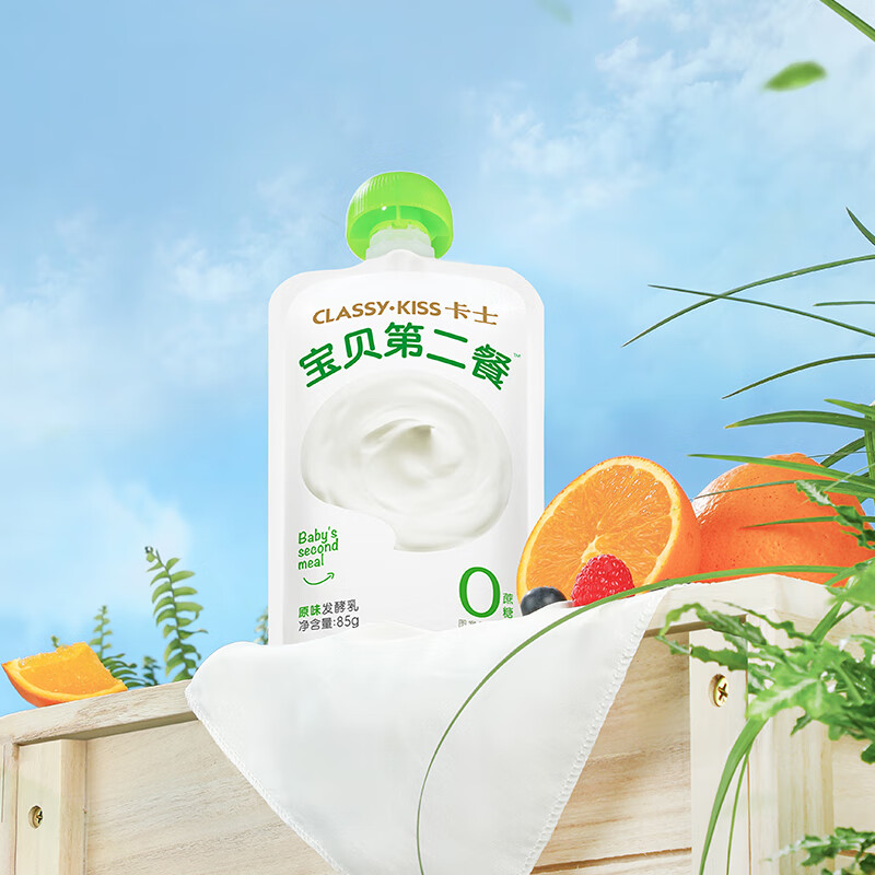 ¥98.9 卡士CLASSY·KISS 宝贝第二餐酸奶(单袋85g)风味发酵乳低温酸奶 原味无蔗糖*11袋 108.9