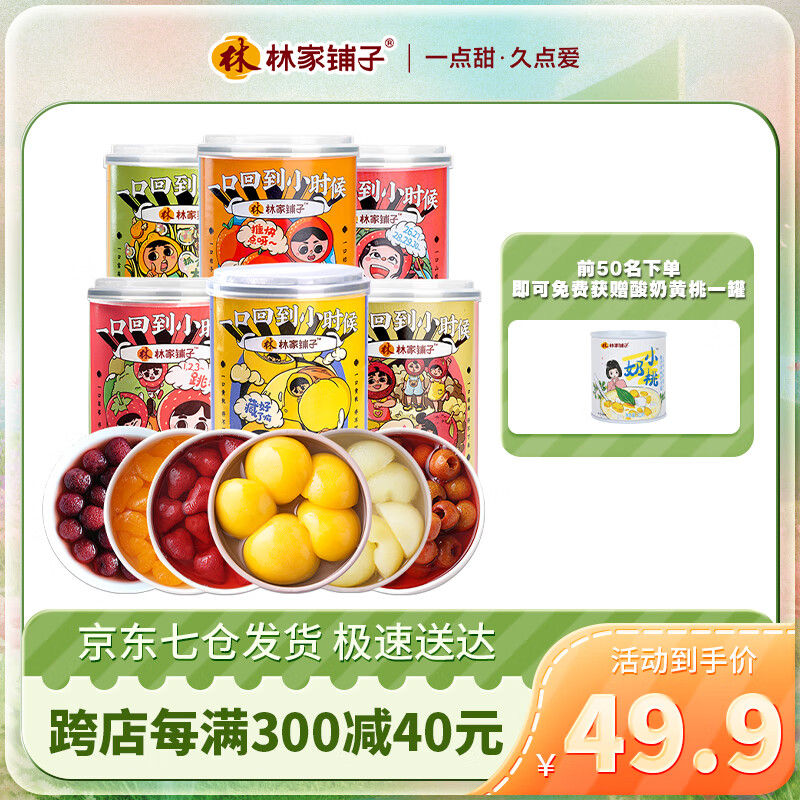 ¥49.9 林家铺子多口味水果罐头组合装(口味随机) 425g*6罐 54.9