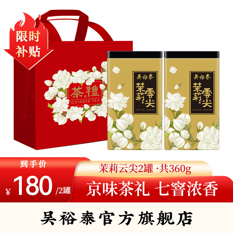 ¥160 吴裕泰茉莉花茶特种茉莉绿茶浓香型茶叶新茶七窨芽叶醇香口粮花草茶云尖 云尖两罐共360g 180