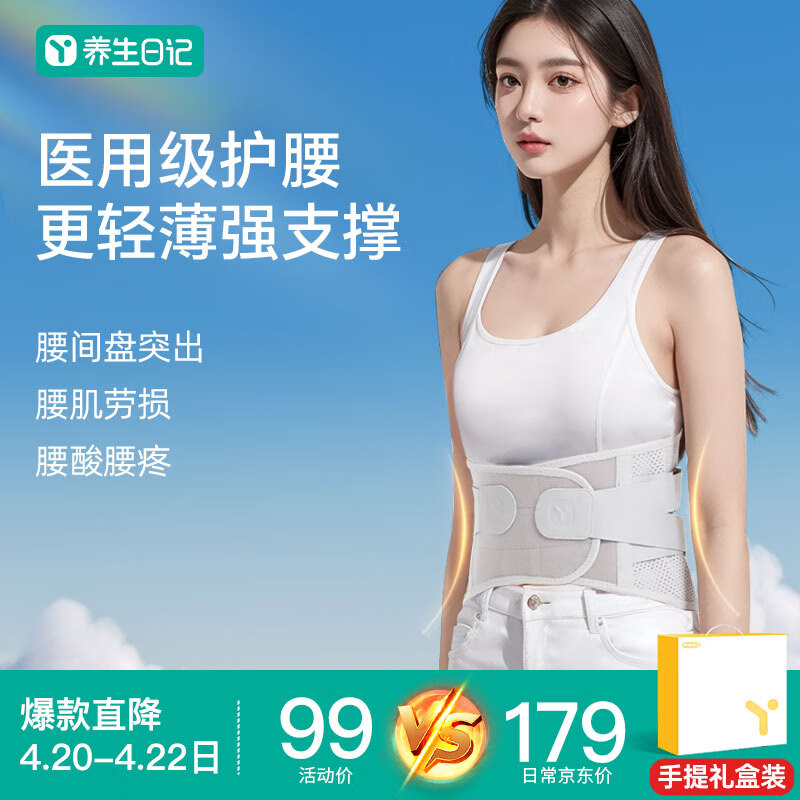¥159 养生日记医用护腰带腰间盘突出腰肌劳损腰椎膨出保暖腰托脱腰围腰疼腰酸自发热敷男女诺泰固定收腹支撑支具 199