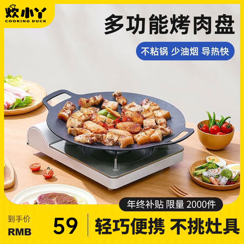 ¥125 炊小丫(CHUIXIAOYA)烤盘麦饭石烧烤盘家用不粘无烟烤肉盘电磁炉煎烤盘户外板烧烤肉锅 【加大加厚,灶具通用】 30cm 159