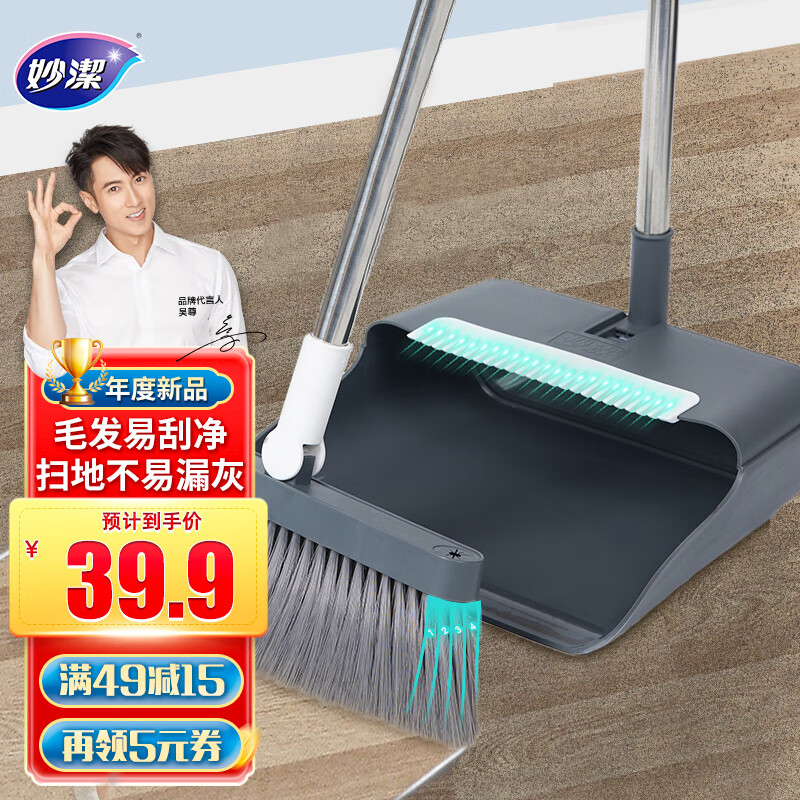 ¥54.9 妙洁 扫把簸箕组合套装家用扫地 可折叠梳齿扫把简约型 59.9