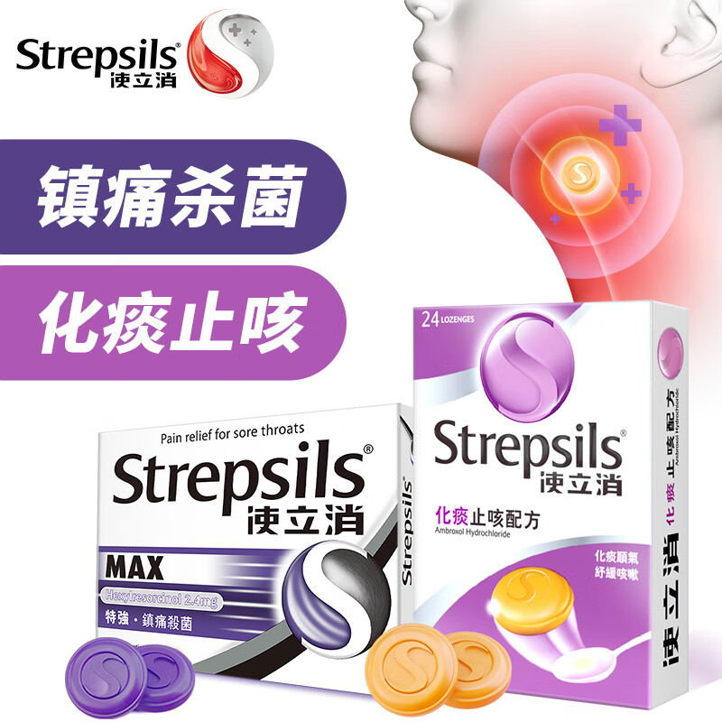 ¥94.9 使立消Strepsils润喉糖喉痛含片 镇缓痛杀菌咽喉炎保护嗓子疼痒干喉咙痛咳嗽 戒烟糖替代品薄荷糖 【经典搭配】化痰+镇喉痛40粒 119.9