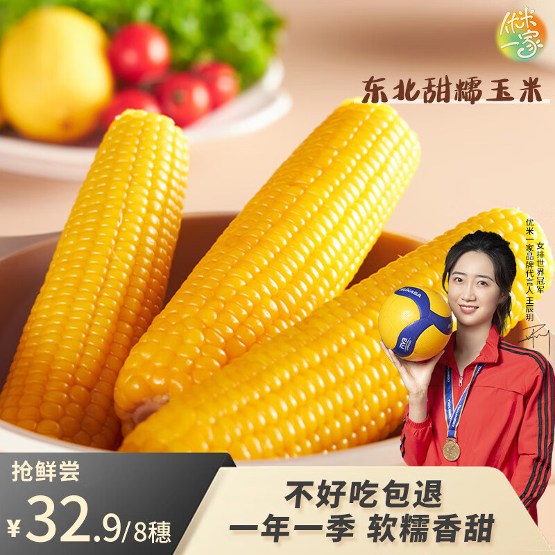¥29.9 优米一家东北黄糯玉米棒新鲜甜非转基因苞米减低脂代餐真空包装黑白五芳斋 黄糯玉米≥200g*8(可试吃1棒) 42.9