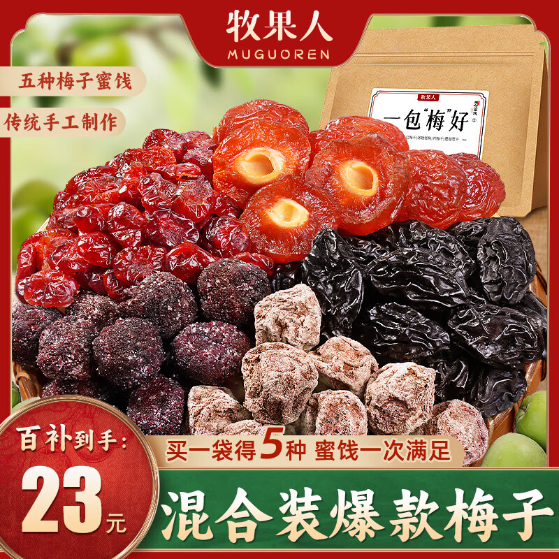 ¥24 牧果人一包梅好混合梅子干蜜饯网红零食果干果脯话梅红杏干黄桃葡萄乌梅 梅子组合418g/袋 26