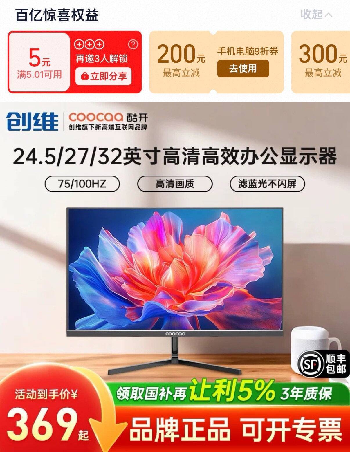 创维酷开21寸显示器到手价233.1元