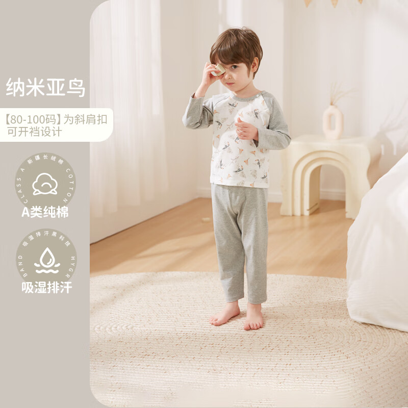 ¥59.9 欧孕(OUYUN)儿童家居服睡衣春夏款棉质小孩居家套装男女宝宝秋衣裤 纳米亚鸟【九分袖】 170码 89.9