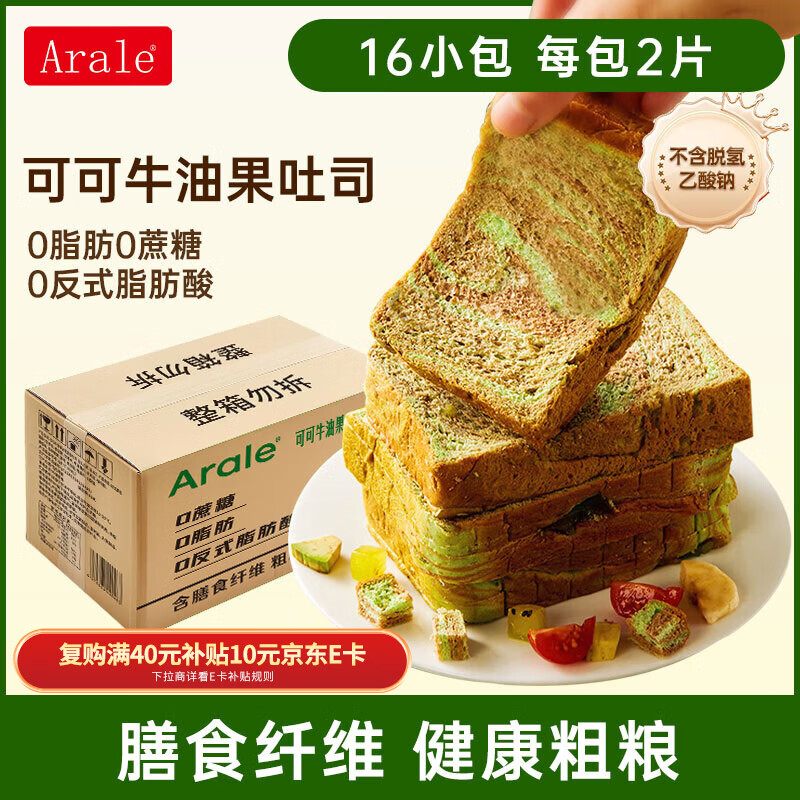 Arale可可牛油果全麦吐司面包800g 券后低至11.9元
