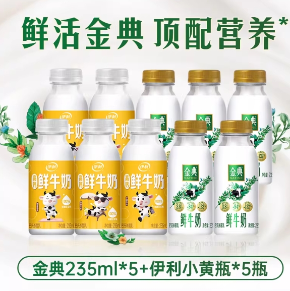 28元包邮!伊利金典鲜牛奶235ml*5 +高钙鲜牛奶235ml*5瓶