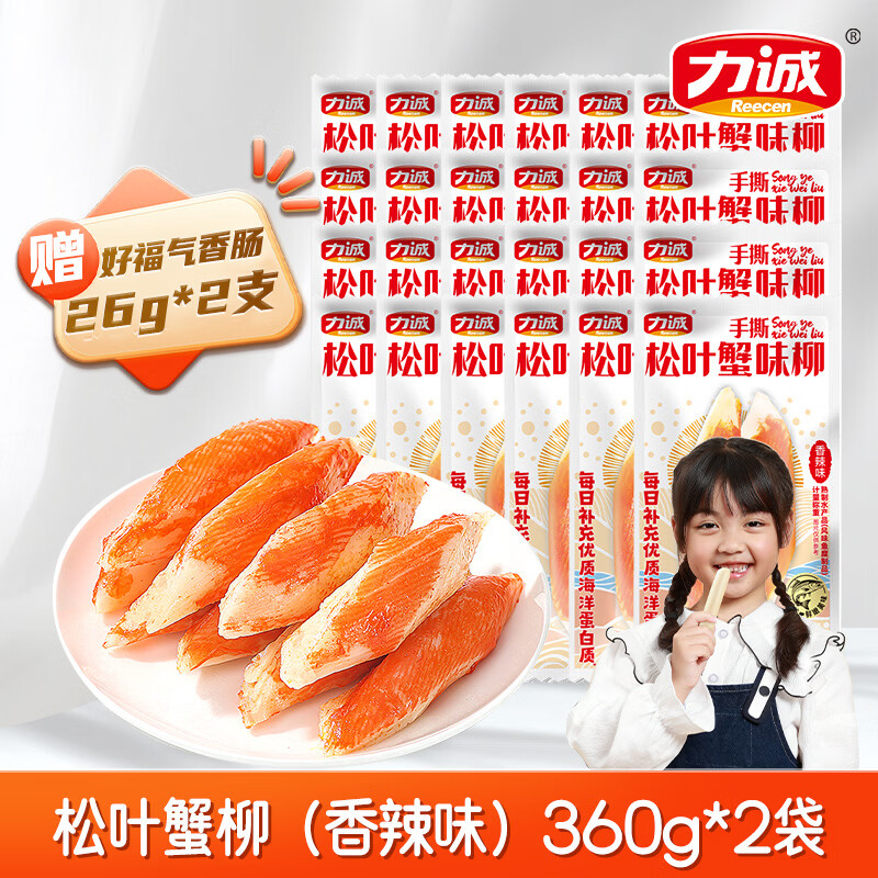 力诚手撕松叶蟹柳360g*2袋 到手19.9元赠香肠