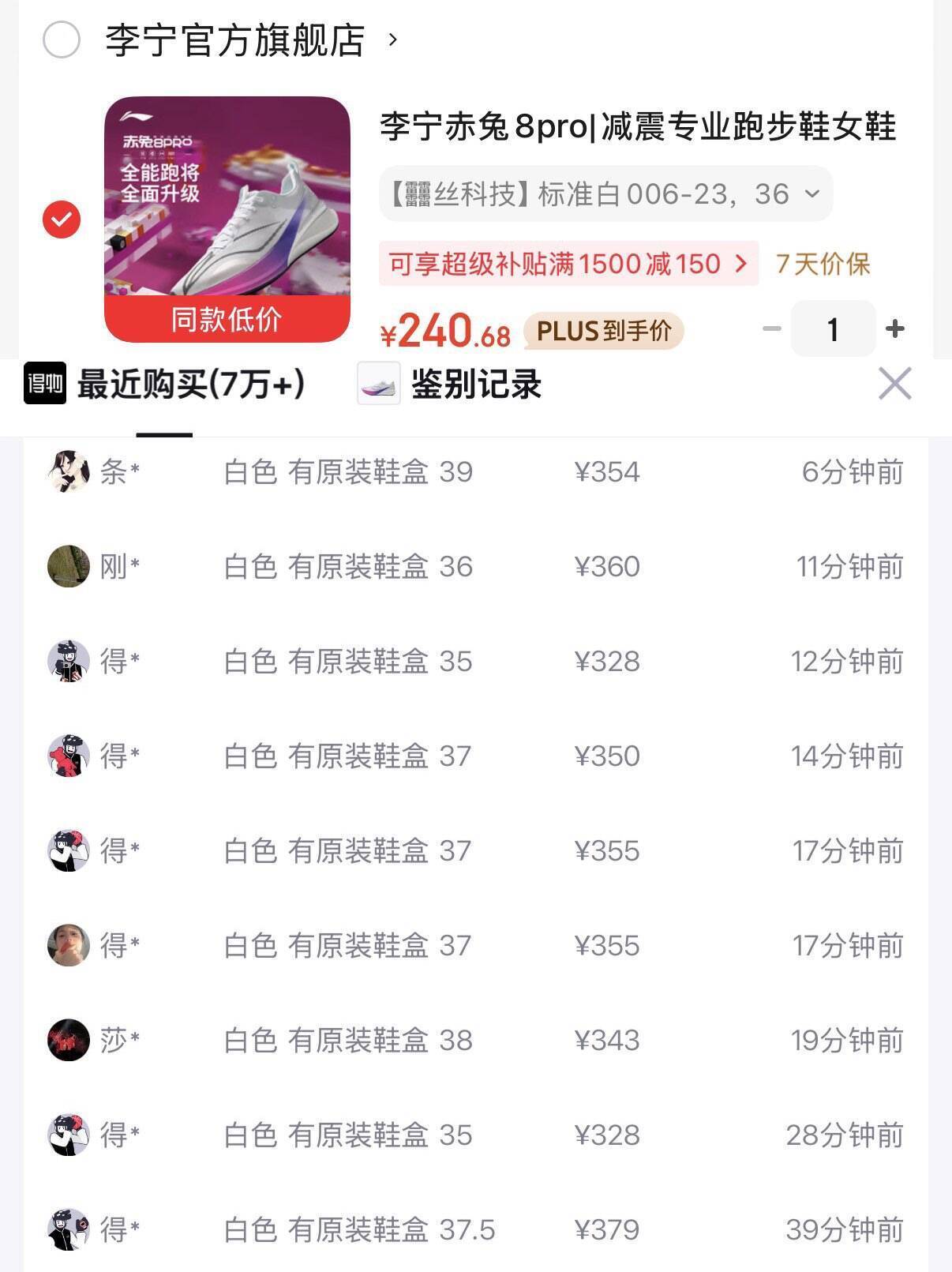 李宁赤兔8 PRO女款运动鞋PLUS到手仅需240元