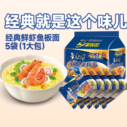 8元包邮!康师傅 经典鲜虾鱼板面5袋