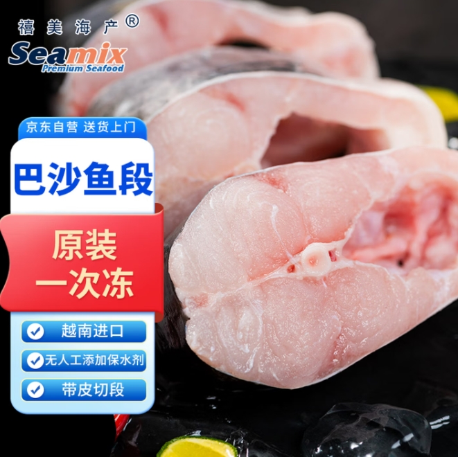 67.9元包邮!禧美海产 越南进口巴沙鱼段 净重3斤*2