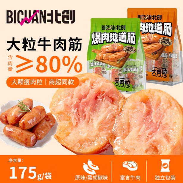 15.03元包邮!自营北创 火腿肠地道肠原味175g*2件
