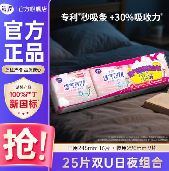 洁婷绵柔双U日夜用组合25片折后7.9元