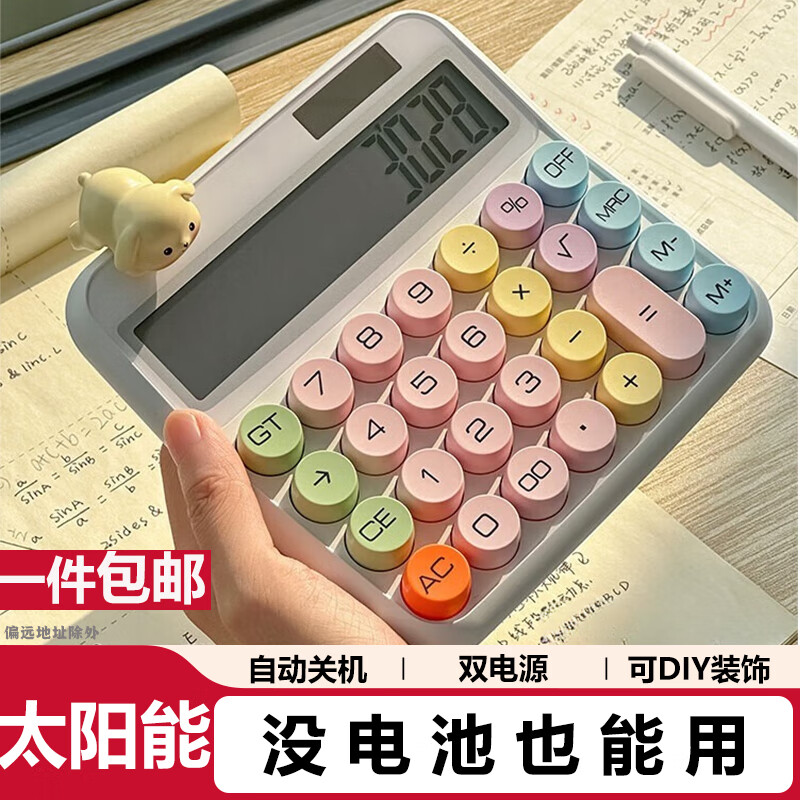 19.8元限时抢!三年二班静音太阳能计算器,学生办公高颜值必备