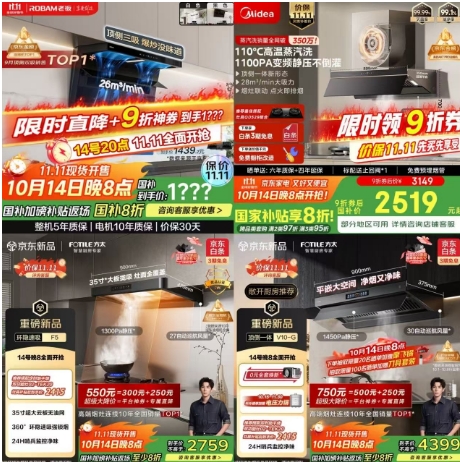 【京东】油烟机11.11开抢 低至5折,以旧换新立减10%