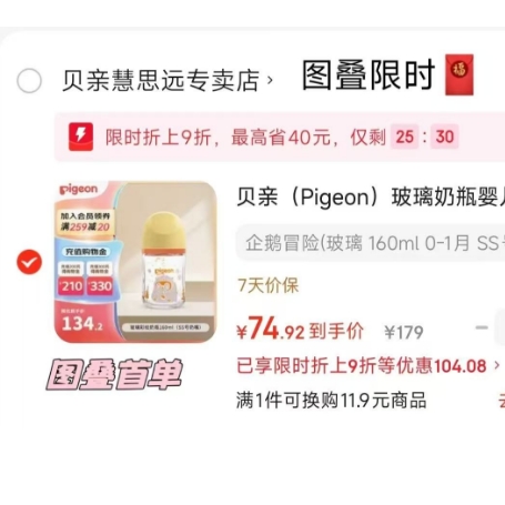 贝亲彩绘奶瓶合集:160ml仅需74.9元,240ml低至79.8元