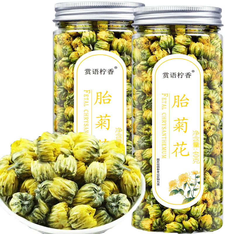 ¥17.9 赏语柠香胎菊花 桐乡胎菊杭白菊花蕾泡水喝的花草茶可搭枸杞决明 40g*2罐 29.9
