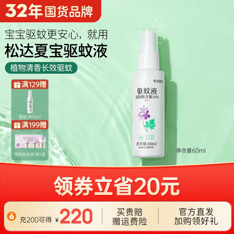 ¥14.9 松达夏宝蚊香液驱蚊液驱蚊用品防蚊喷雾舒爽便携驱蚊水 驱蚊液60ml 39.9