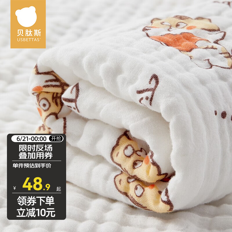 ¥28.9 贝肽斯婴儿浴巾云绒新生儿宝宝春秋浴巾纯棉儿童浴巾吸水毛巾宝宝 虎虎生威 纱布6层110*105cm 1 58.9