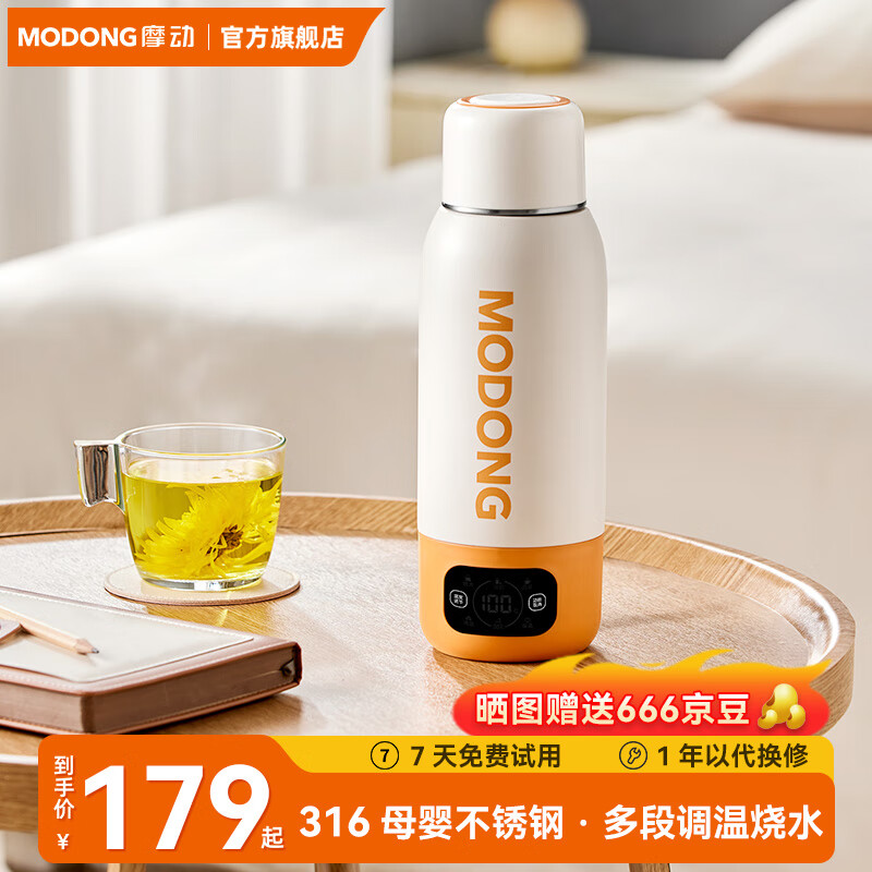 ¥169 摩动电热水杯便携式烧水壶316不锈钢旅行真空保温烧水杯礼物折叠出差煮茶泡奶电热水壶办公室MD-BW02B 179