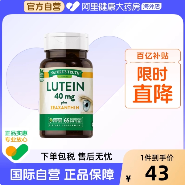 30.6元包邮!自然之珍 叶黄素软胶囊40mg*65粒