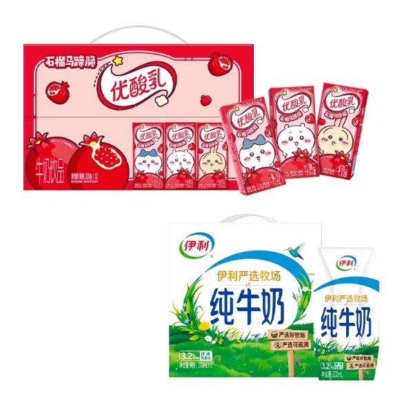 34元包邮!伊利牛奶2箱 三种组合任选,最多32盒