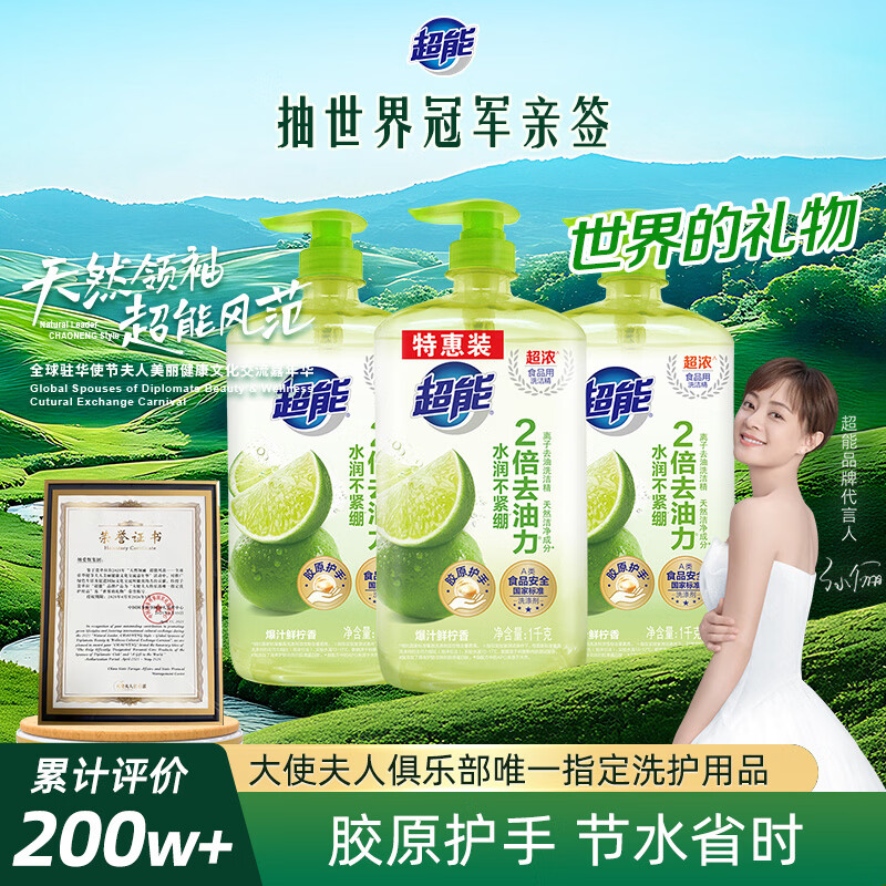 超能离子去油洗洁精1kg*3瓶仅5.8元/瓶
