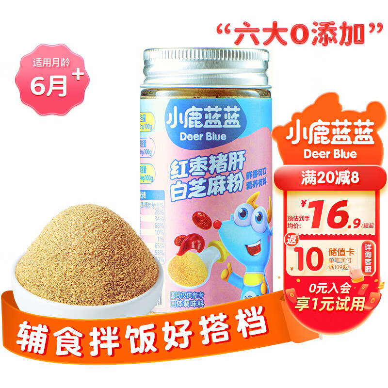 ¥16.9 小鹿蓝蓝红枣猪肝白芝麻粉30g 高铁高钙含锌宝宝调味儿童拌饭佐料增香调味 24.9