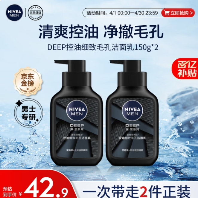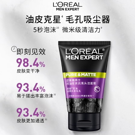 29.9元包邮!欧莱雅男士去黑头洗面奶100ml