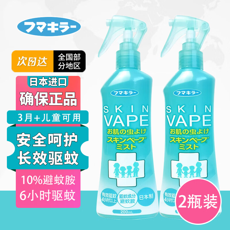 ¥36.9 佰氏佳品 VAPE日本进口便携驱蚊花露水驱蚊神器驱蚊水喷雾孕婴可用 【柑橘味】200ml*2瓶装 156.9