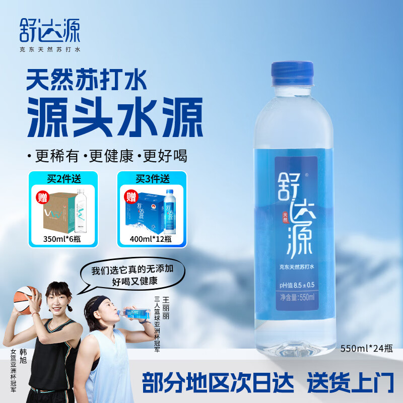 ¥180 舒达源天然苏打水 弱碱性水高端饮用水整箱 550ml*24/瓶无糖无添加 【品牌爆款】 218