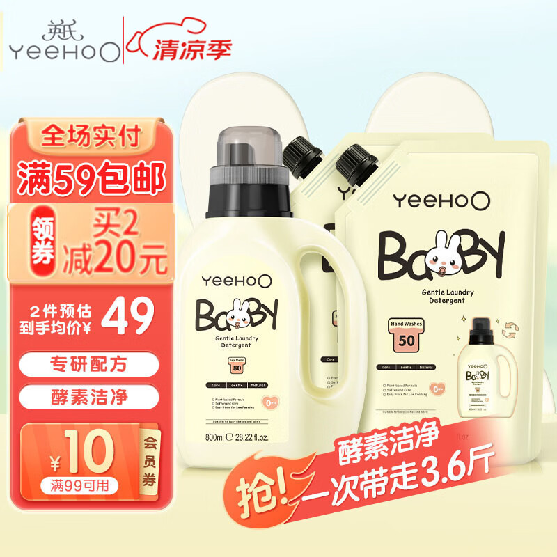 ¥49 英氏婴儿洗衣液儿童洗衣液婴幼儿宝宝专用去渍内衣内裤洗衣液3.6斤 59