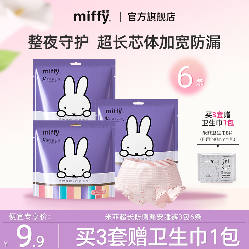 ¥37.9 米菲Miffy安睡裤女经期用安心裤姨妈裤夜用拉拉裤大码安全裤型卫生巾 L-XL码 2条 140-180斤 8包16条【店长推荐】 42.9