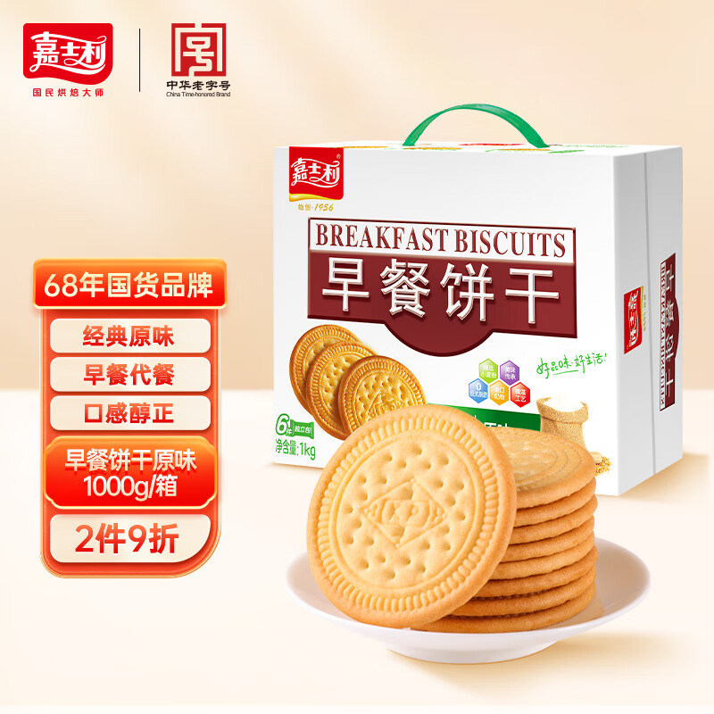 ¥21.8 嘉士利饼干零食 营养早餐饼干 原味1000g/箱 早餐食品零食礼盒团购 25.8