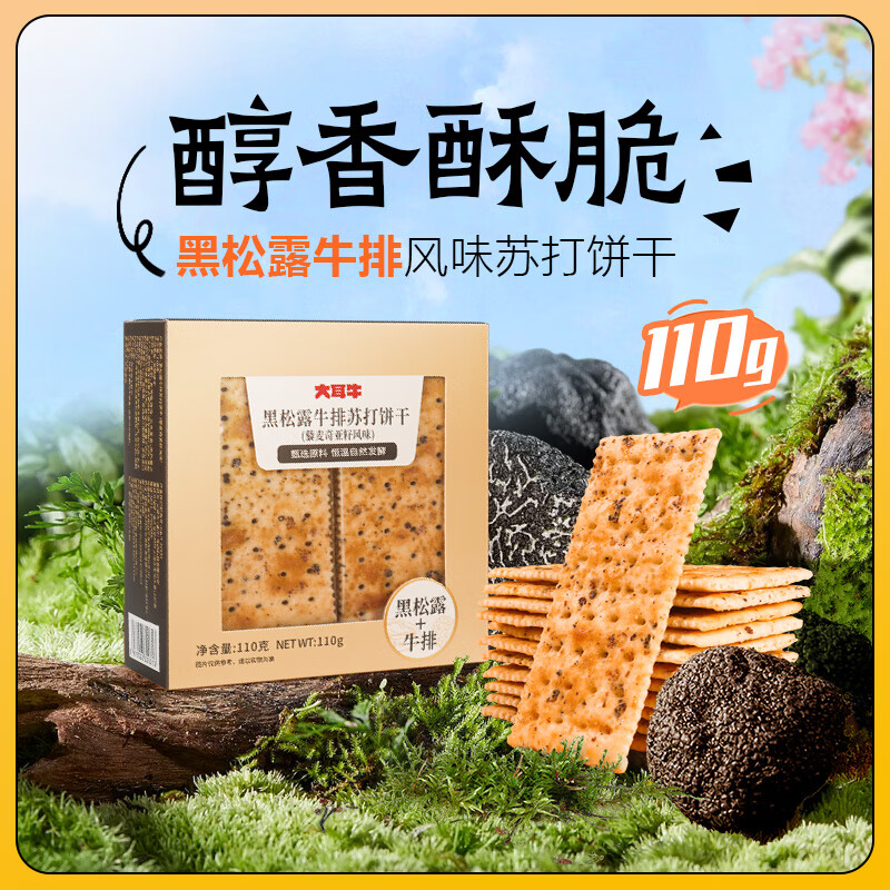 ¥16.9 大耳牛黑松露牛排苏打饼干(藜麦奇亚籽风味)办公室休闲零食独立小包装 【5盒装】 110g *5 49.9