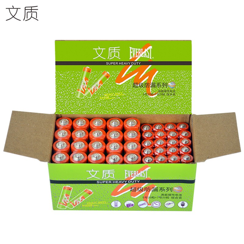 ¥20.8 文质(EVERLAST) 文质5号7号碳性电池组合装40粒装 电子秤低耗电婴儿玩具 遥控器电池 时钟挂钟计算器通用 碳性5号20粒+7号20粒 69.8