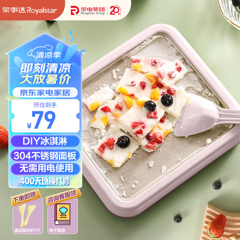 ¥40 荣事达(Royalstar)炒酸奶机 炒冰机 冰淇淋机器儿童家用自制DIY酸奶机炒冰板炒酸奶网红制冰神器CBJ06S紫色 79
