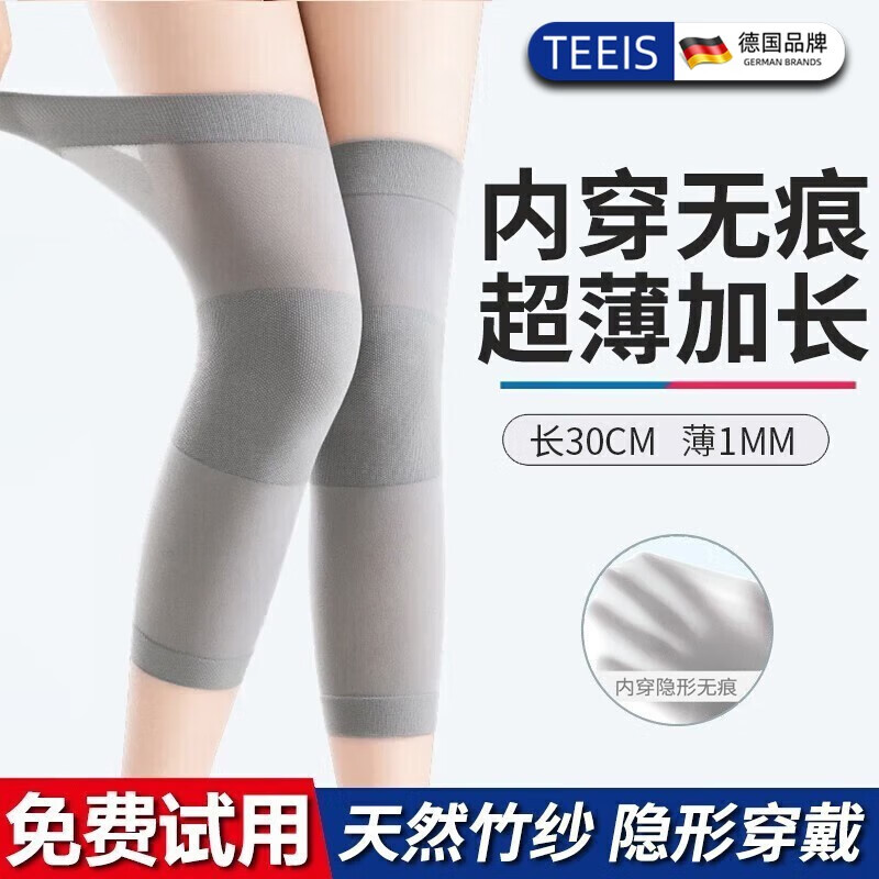 ¥29 TEEIS德国护膝夏季超薄款女士长筒套空调房保暖护腿运动无痕加长防滑 内穿无痕丨天然竹纱 L码丨适合80-120斤 丨两只装 49