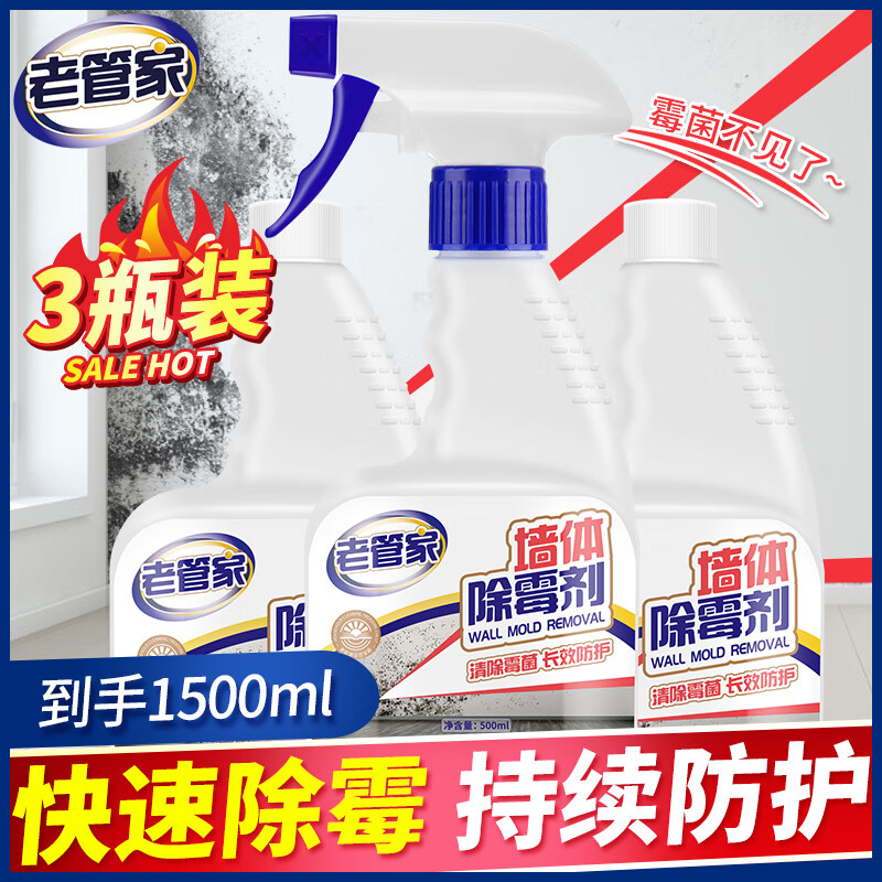 ¥19.8 老管家墙体除霉剂墙面去污防霉去发霉菌斑清洁 500ml 3瓶 【家庭装】 39.8