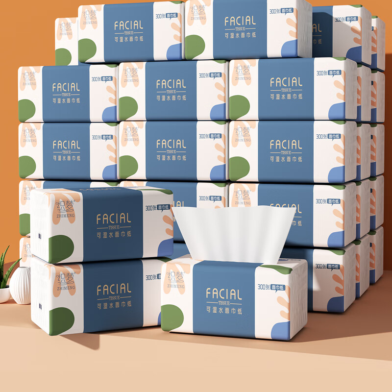 ¥44.9 织梦 大包抽纸巾原木浆纸巾家庭实惠装300张卫生纸大号餐巾纸 4层 300张 24包 74.9