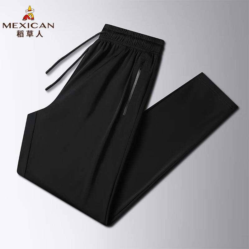 ¥39.9 稻草人(MEXICAN)冰丝长裤男新款舒适透气弹力速干运动裤F 黑色直筒 4XL【150-165斤】 129.9
