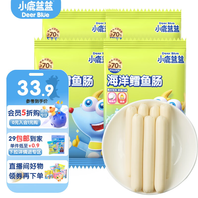 ¥51.9 小鹿蓝蓝深海鳕鱼肠宝宝零食儿童营养高蛋白休闲零食健康即食 深海鳕鱼肠【4袋装】 59.9
