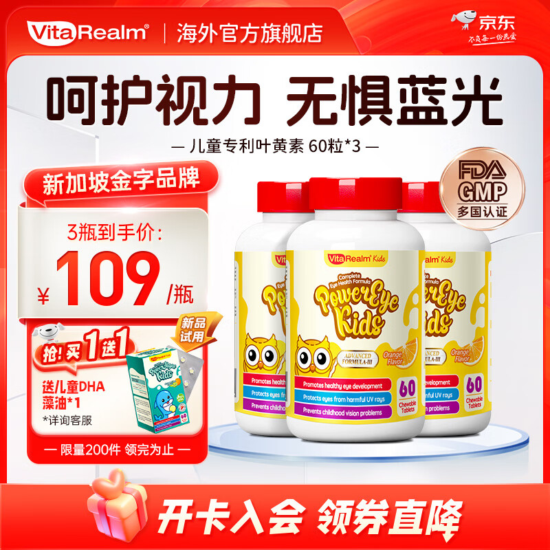 ¥339 【国际蒙特奖】维乐原儿童叶黄素专利配方蓝莓护眼片(适合1-12岁儿童)抵御蓝光儿童护眼保护视力 60粒*3盒 399